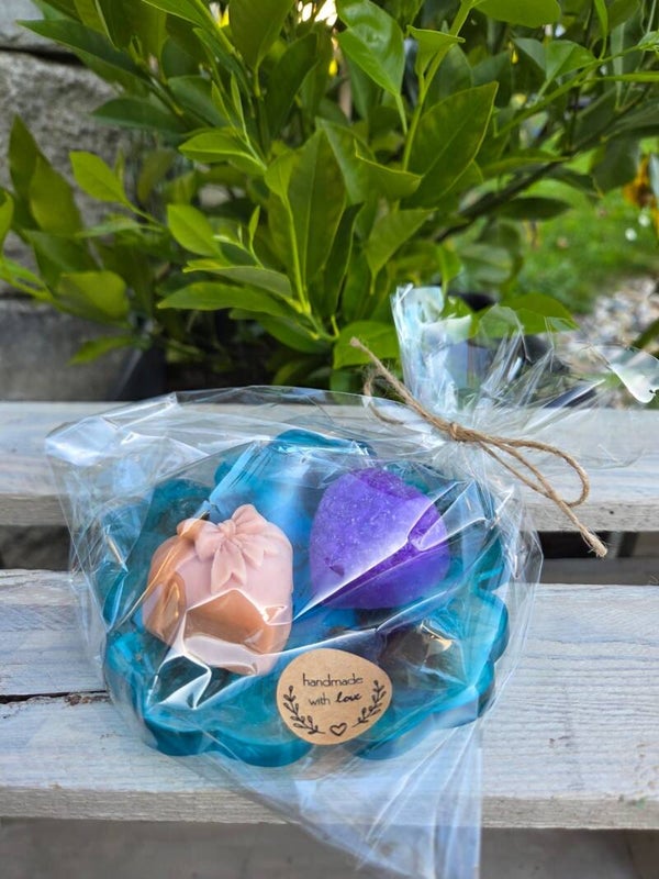 individuell gestaltete Epoxidharzuntersetzer mit kleinen Extras darauf.